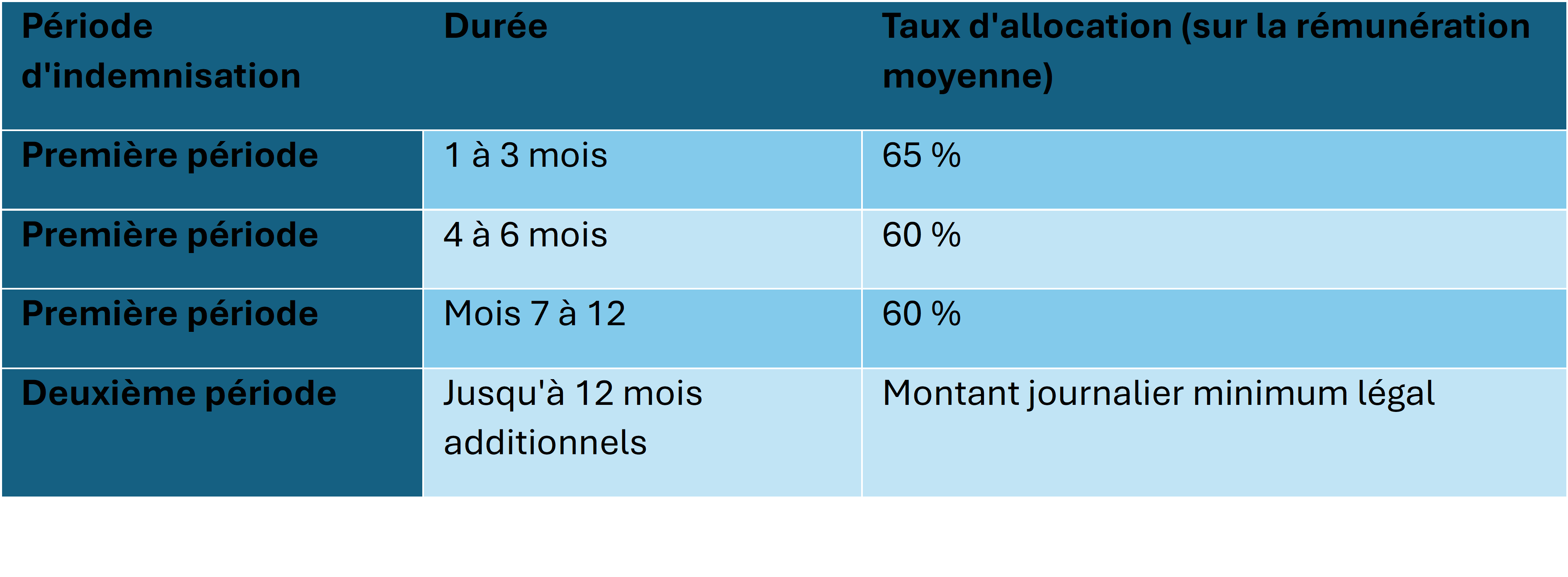 - Ce droit comprend une période de base de 12 mois (la première période d’indemnisation).