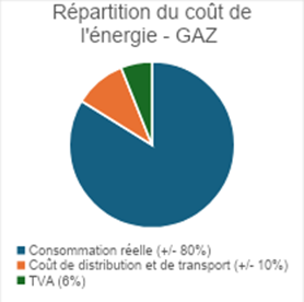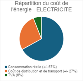 Au-delà de la consommation réelle d’énergie, notre facture est composée d’autres éléments, tels que la TVA ainsi que les coûts de distribution et de transport, à charge du consommateur.